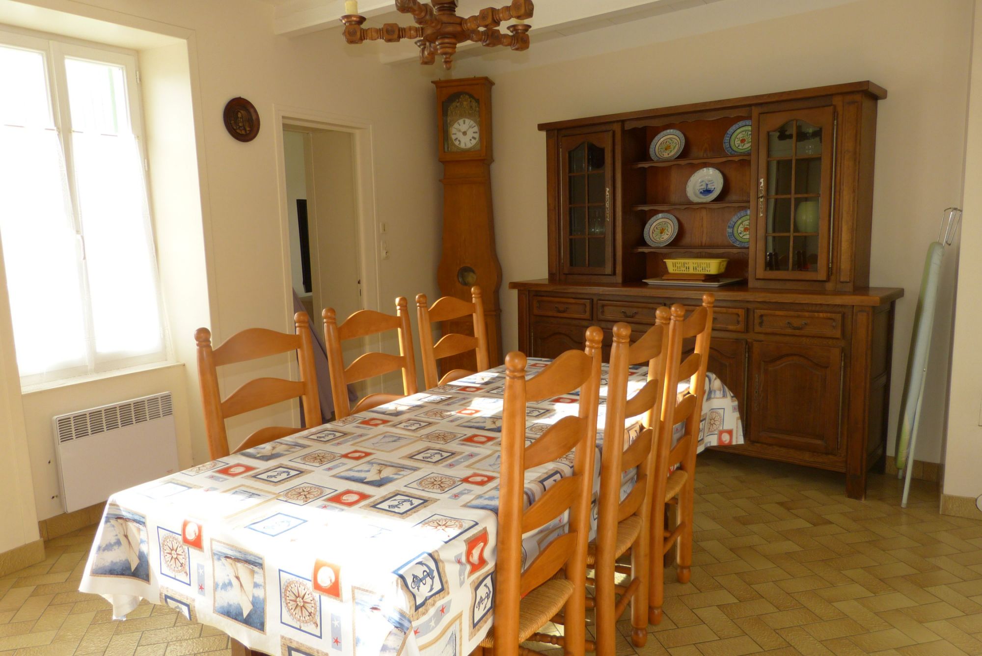 Gîte rural mitoyen au gîte 17G16029. Cuisine. Séjour. Salon. WC. A l'étage: 3 chambres: (1 lit 2 personnes 1 lit bébé à barreaux), (1 lit 2 personnes), (2 lits 1 personne). Salle d'eau/WC. Cour close privative. Abri vélos. Toutes charges comprises. Chaise haute et baignoire bébé à disposition.